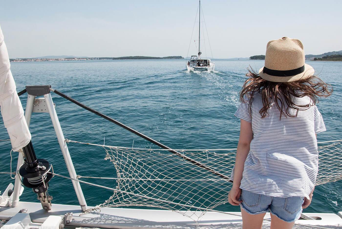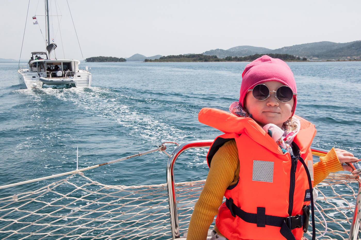 Sprawą kluczową w takich rejsach jest bezpieczeństwo. Nasi skipperzy mają przeszkolenie w zakresie pierwszej pomocy. Są ratownikami WOPR, ale nade wszystko, wiedzą na co zwrócić uwagę by zapewnić komfort i bezpieczeństwo. Organizując rejs rodzinny pamiętamy o kamizelkach w odpowiednim rozmiarze oraz o tzw. safety net. Jest to siatka montowana na relingach jachtu, która dodatkowo zabezpiecza przed wypadnięciem za burtę (za safety net obowiązuje dodatkowa opłata i należy zgłosić chęć jej zamontowania przed rejsem)