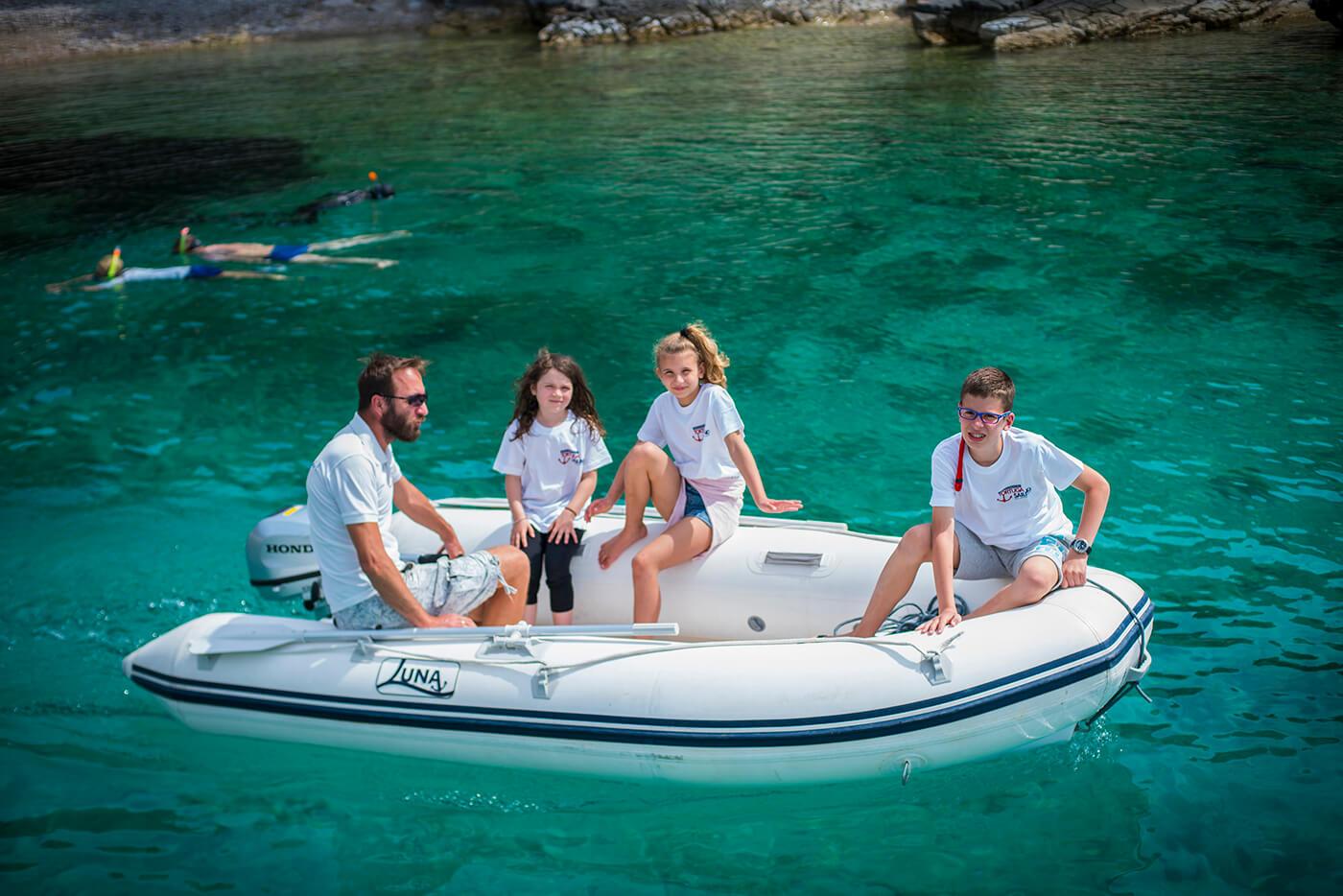 W rejsach rodzinnych pokonywane każdego dnia dystanse są dostosowane do chęci i możliwości załogi a trasa zaplanowana tak, aby obfitowała w miejsca atrakcyjne dla maluchów [bezpieczne do kąpieli zatoczki, wielkie i tajemnicze ruiny zamków pirackich, miasteczka rybackie pełne kolorowych kutrów i lokalnych rybaków].